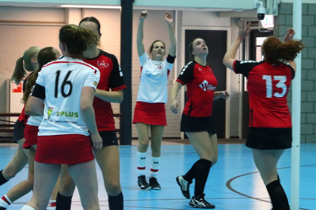 Middels een time-out kwam de thuisploeg sterk terug en werd er doelpunt voor doelpunt geknokt om dichter bij KVC te komen. Door hard werken werd de achterstand weggewerkt en vlak voor het rustsignaal stond ONA/Astrantia op voorsprong: 9-8.